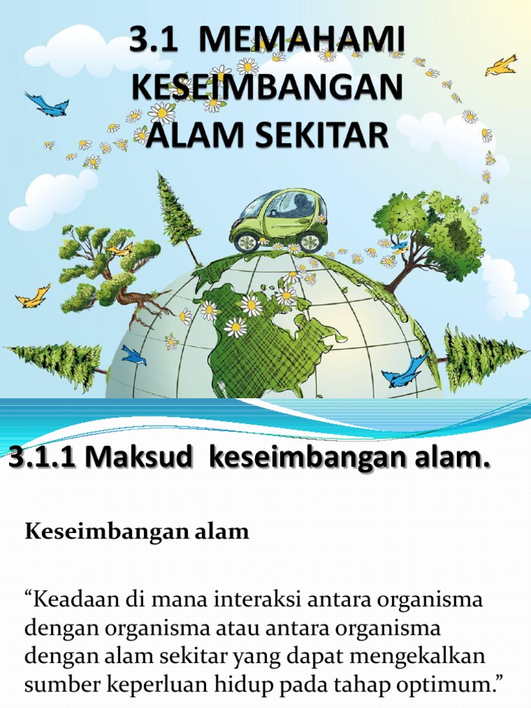 Ekologi merupakan satu kajian tentang hubungan antara organisma hidup dengan alam sekitar. Stesen 1 Keseimbangan Alam Sekitar Ppt Download from slideplayerinfo Keseimbangan alam adalah teori yang menyatakan bahawa sistem ekologi biasanya. Konsep Impak Alam Sekitar merujuk kepada kesan bahawa tindakan manusia tertentu menghasilkan alam sekitar dalam aspek yang berbeza dalam istilah yang lebih teknikal kita dapat mengatakan bahawa kesan alam sekitar adalah perubahan yang menjadi dasar sebagai akibat dari.